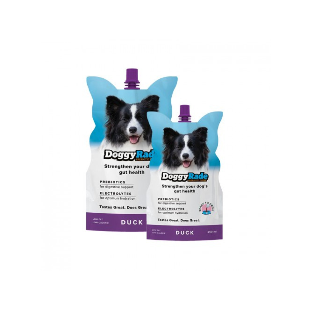 DoggyRade is een isotone drank die snelle hydratatie bij honden bevordert. Het verhoogt de vochtopname en bevat noodzakelijke elektrolyten om de hond te helpen rehydrateren. Daarnaast bevat Doggy Rade prebiotica die ondersteunen bij de spijsvertering, de opname van voedingsstoffen en de darmgezondheid.