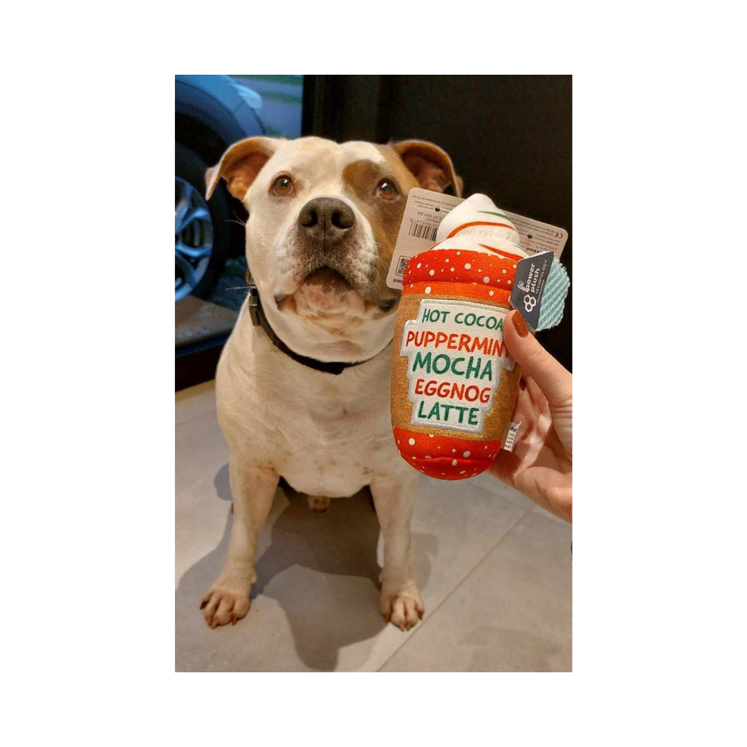 Bij de koude wintermaanden horen warme dranken. De Lulubelles Power Plush Holiday Kerstspeeltje Latte My Way van Huxley & Kent past dan ook helemaal in het thema! Je hond kan zich al spelend opwarmen met deze leuke kerstdrank die aan beide zijden bedrukt is. Door de grootte van het speeltje, is deze ook geschikt voor kleinere en middelgrote honden.