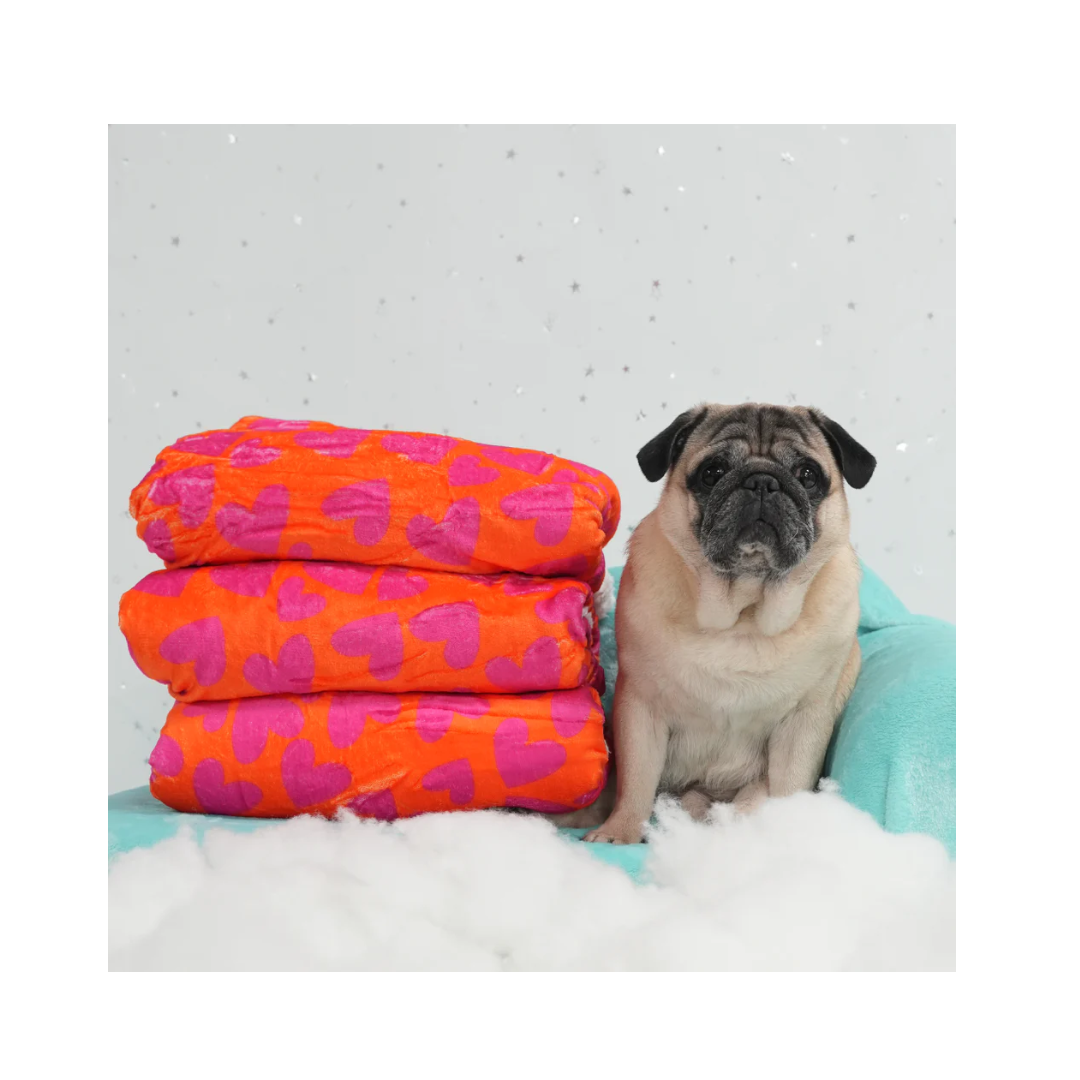 Net zoals wij liggen veel honden graag zacht en comfortabel om te rusten of te slapen. De Hondendeken My Pug & Co – Hearts komt hier dan ook helemaal aan tegemoet! Deze grote deken is superzacht en warm. Heerlijk voor jouw viervoeter om op (of onder) te kruipen. Ideaal om in de zetel of de mand van jouw hond te leggen en het beschermt je meubilair tegen vuil en haren.