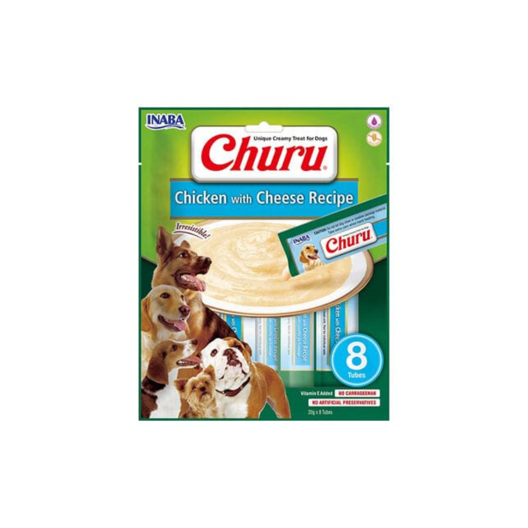 Maak de maaltijd of de likmat van jouw hond nog wat lekkerder met de Inaba Churu Crème Kip met Kaas! Deze snack bestaat uit een romige crème die in aparte verdeelzakjes zit. De crème is rijk aan vocht, graanvrij en is naast kip en kaas aangevuld met vitamine E en groene thee-extract.