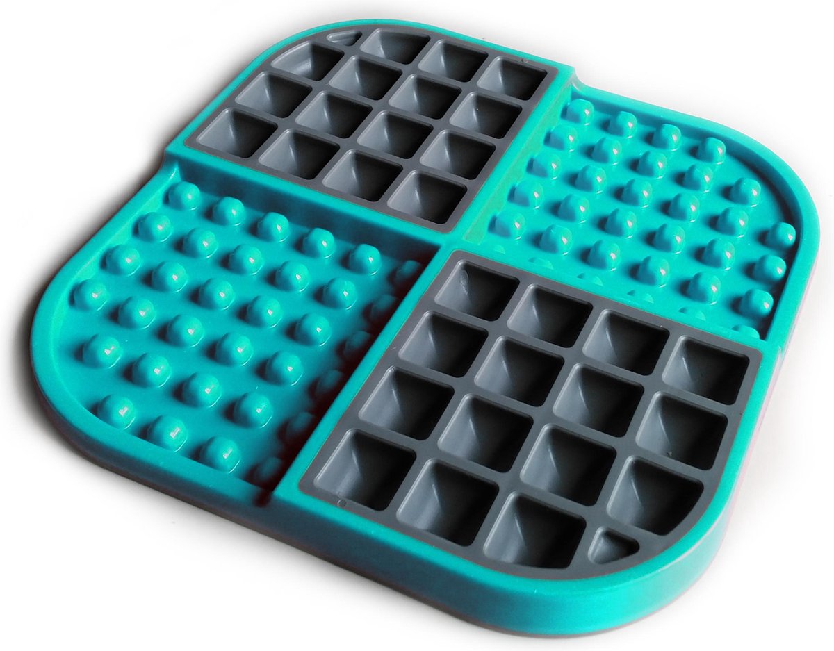 Je kan de mat vullen met allerlei soorten voedsel en snacks: natvoer, vloeibare pasta, brokjes, trainertjes, koekjes,.. alles is mogelijk! Bij warm weer kan je de gevulde mat even invriezen, zodat het likken ook een verkoelend effect heeft.
