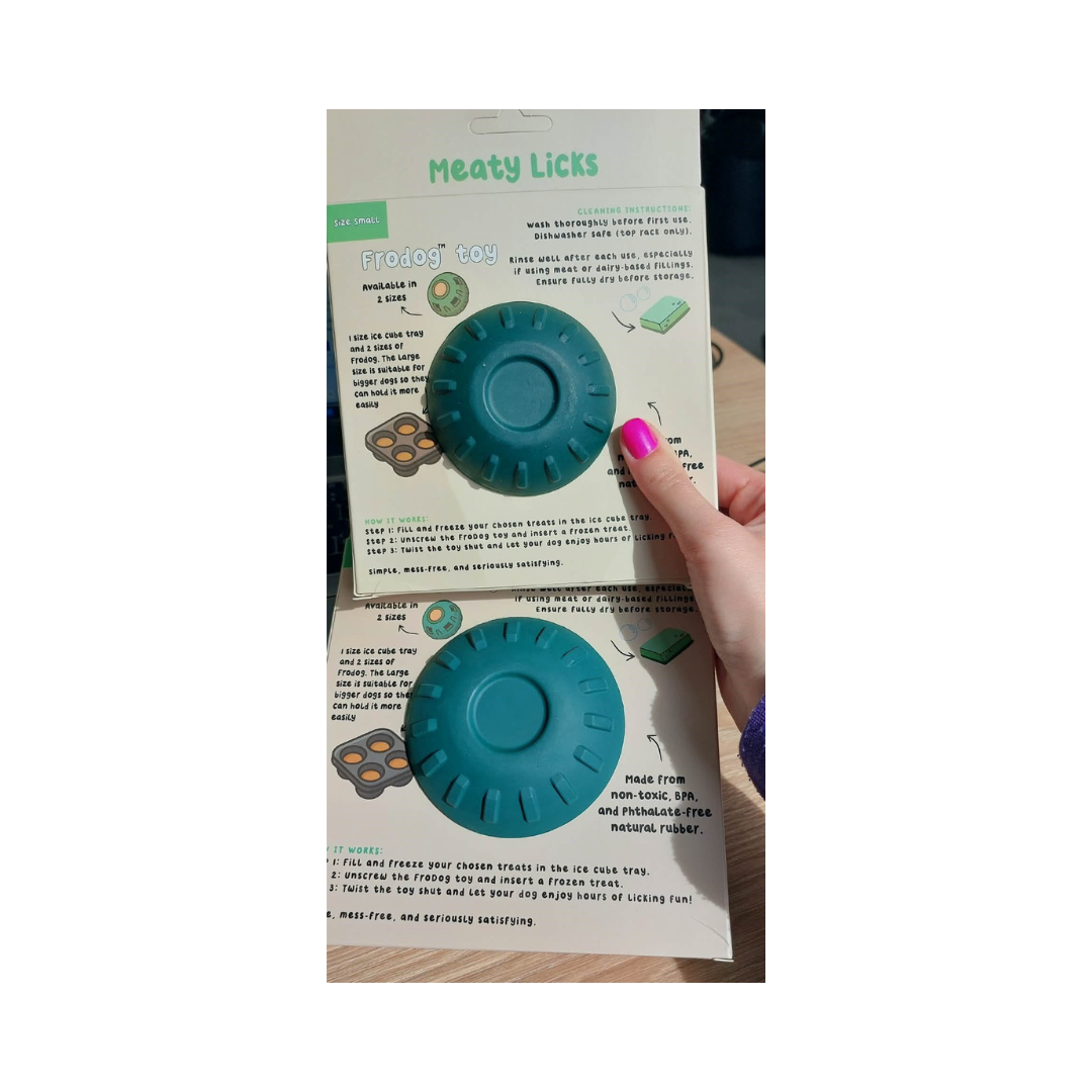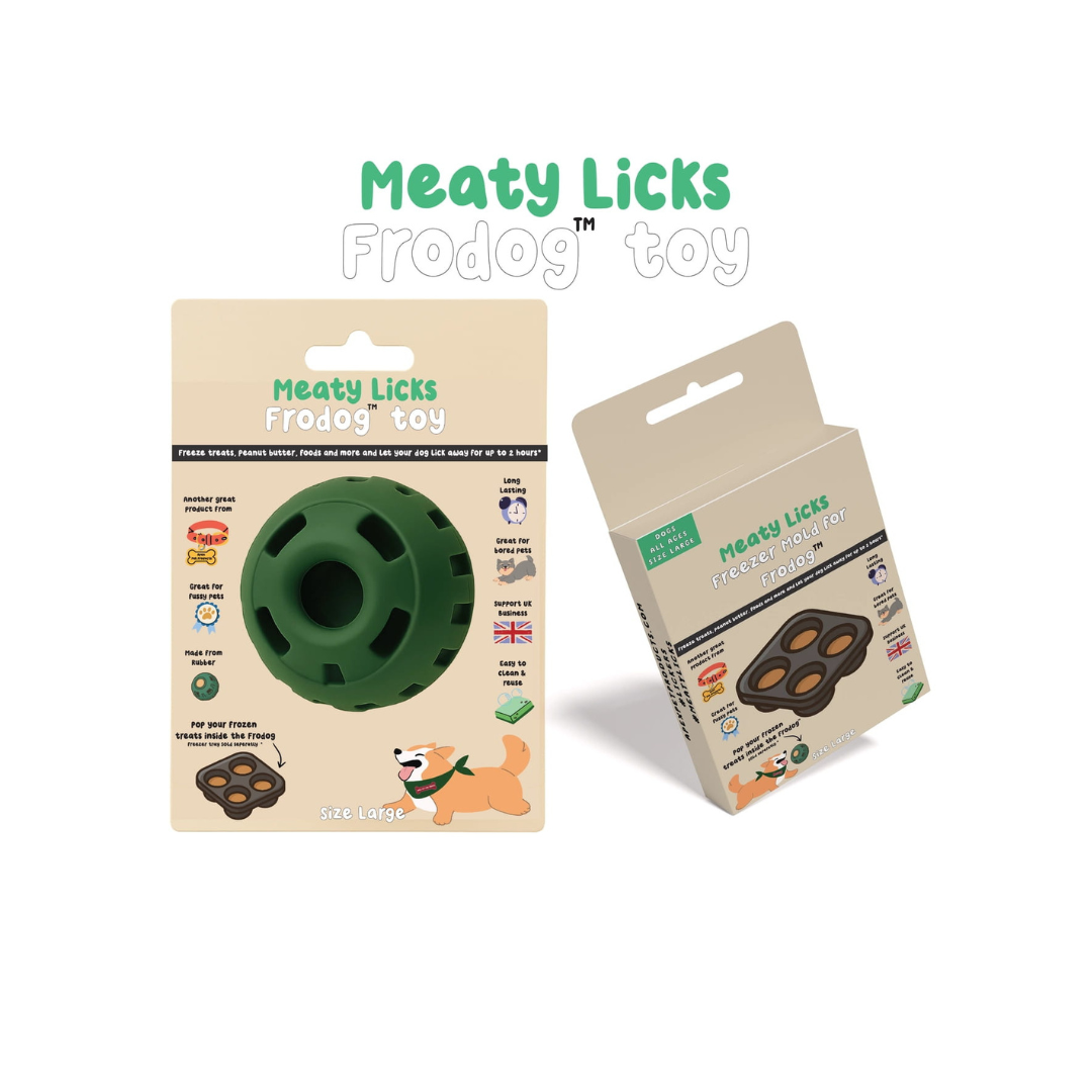 De Meaty Licks Frodog Toy en de Freezer Mold zijn gemaakt van stevig en voedselveilig rubber (niet giftig, BPA- en ftalatenvrij). Hij is speciaal ontworpen voor extra lang likplezier.