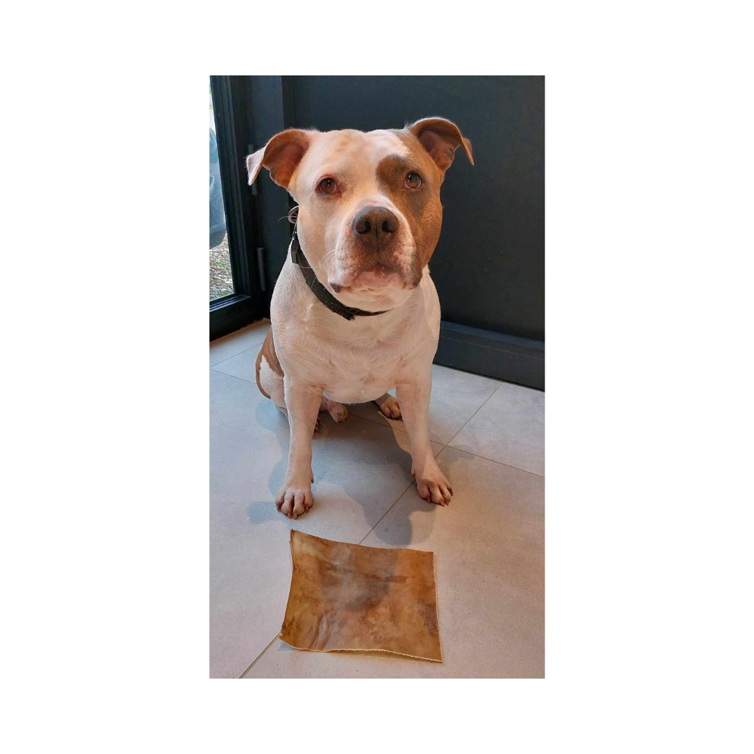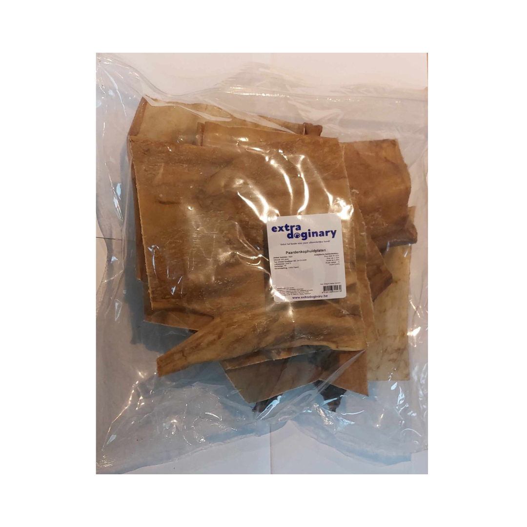 Kauwt jouw hond graag? Probeer dan eens onze paardenkophuidplaten! Deze platen zijn groot en geschikt voor middelgrote tot grote honden die graag kauwen. Deze platen zijn verpakt per 500 gram, waardoor je je hond veel kauwplezier kan geven.