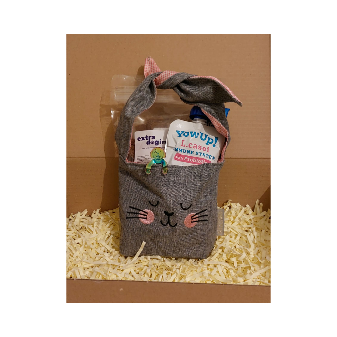 Het Paastasje is uit stof en is dus herbruikbaar. De konijntjesprint en schattige konijnenoren maken het een echt cadeautje, zowel voor jouw hond als voor jou. Liever een blauw tasje? Bekijk dan ook eens ons Stoffen Paastasje Blauw – Mix & Match.