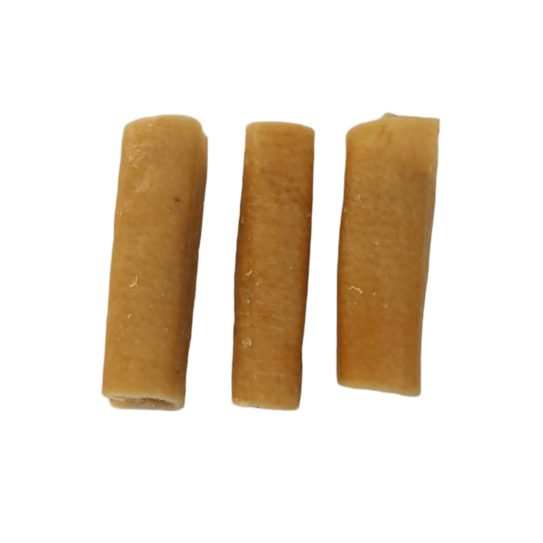 Varkenszwoerd Rol is vrij vet en zwaarder dan rund. Hierdoor is het niet geschikt voor puppy’s en honden die een gevoelige maag hebben. De grootte en dikte van de snack maakt deze het meest geschikt voor middelgrote en grote honden.