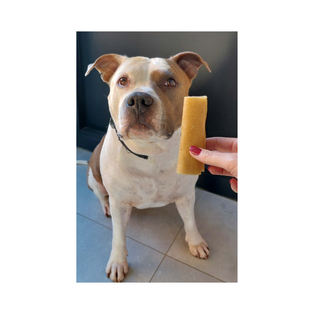 Tip: laat je hond niet urenlang aan een stuk kauwen om de kauwspieren en de tanden te sparen. Pak de snack af na 30 tot 40 minuten kauwen.